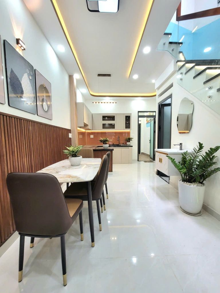 + Ưu điểm nổi bật: Nhà rất mới, còn thơm mùi nước sơn, thiết kế hiện đại – sang trọng – tối ưu công năng, tặng full nội thất cao cấp, chỉ việc xách vali vào ở.